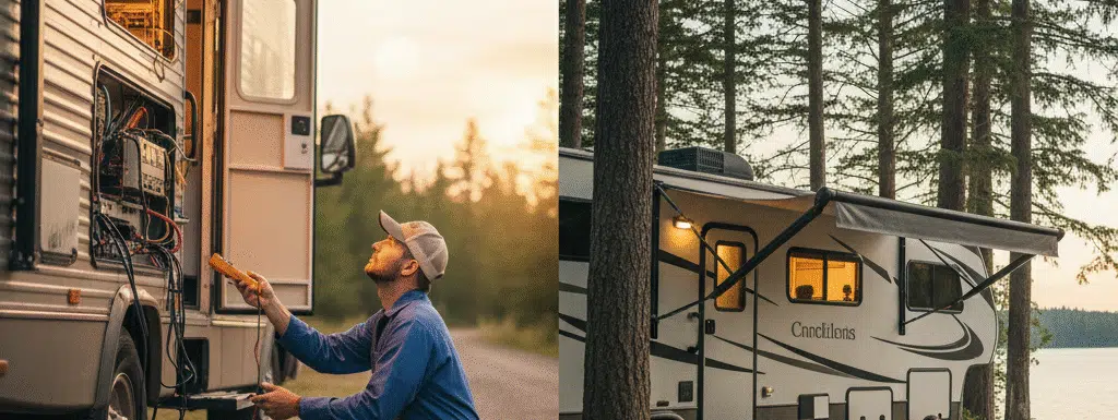 Don’t let flickering lights ruin your RV experience. If you’re in need of expert assistance, Call Roadwise Travel Today. Our mobile RV repair technicians are ready to diagnose and fix any electrical issues, getting you back on the road safely and quickly!